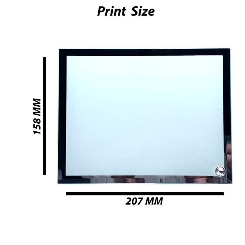 Glass sublimation photo display is a high quality photo display. Glass sublimation photo display is easy to sublimate with a flat heat press. Heat press the a artwork onto the photo display for 240 seconds at 190 degrees celsius for great results.